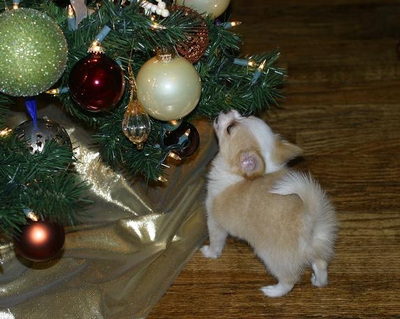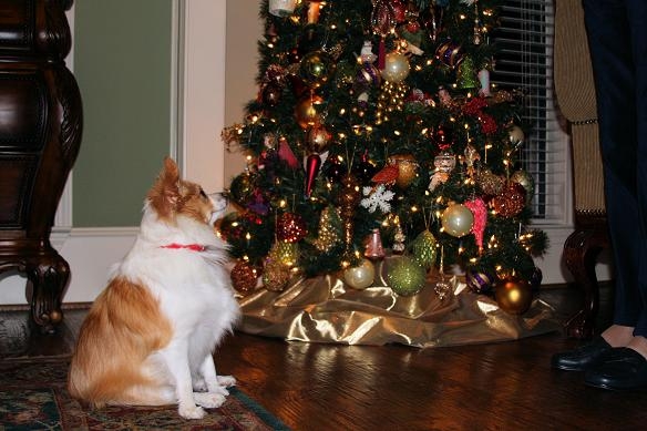 DeeDee checking out the tree, remembering last Christmas when she was a baby